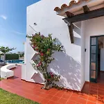 Situated 2.2 km from Son Xoriguer Cove, Villa Lola, Seaviews, Private Pool & Lush Yard Cala'N Bosch invites guests to relax at a terrace.